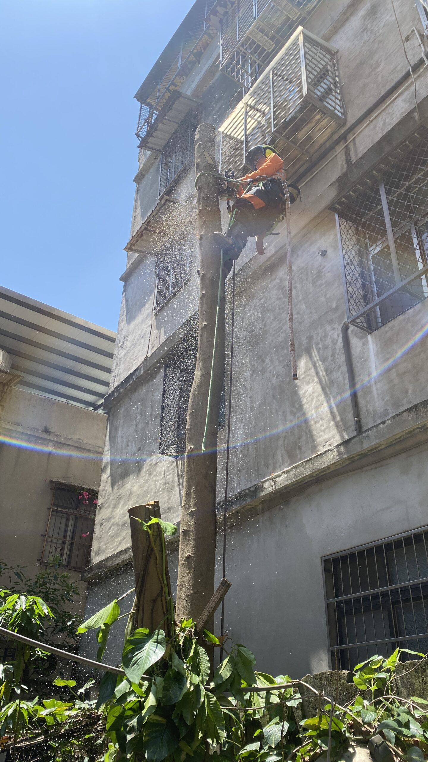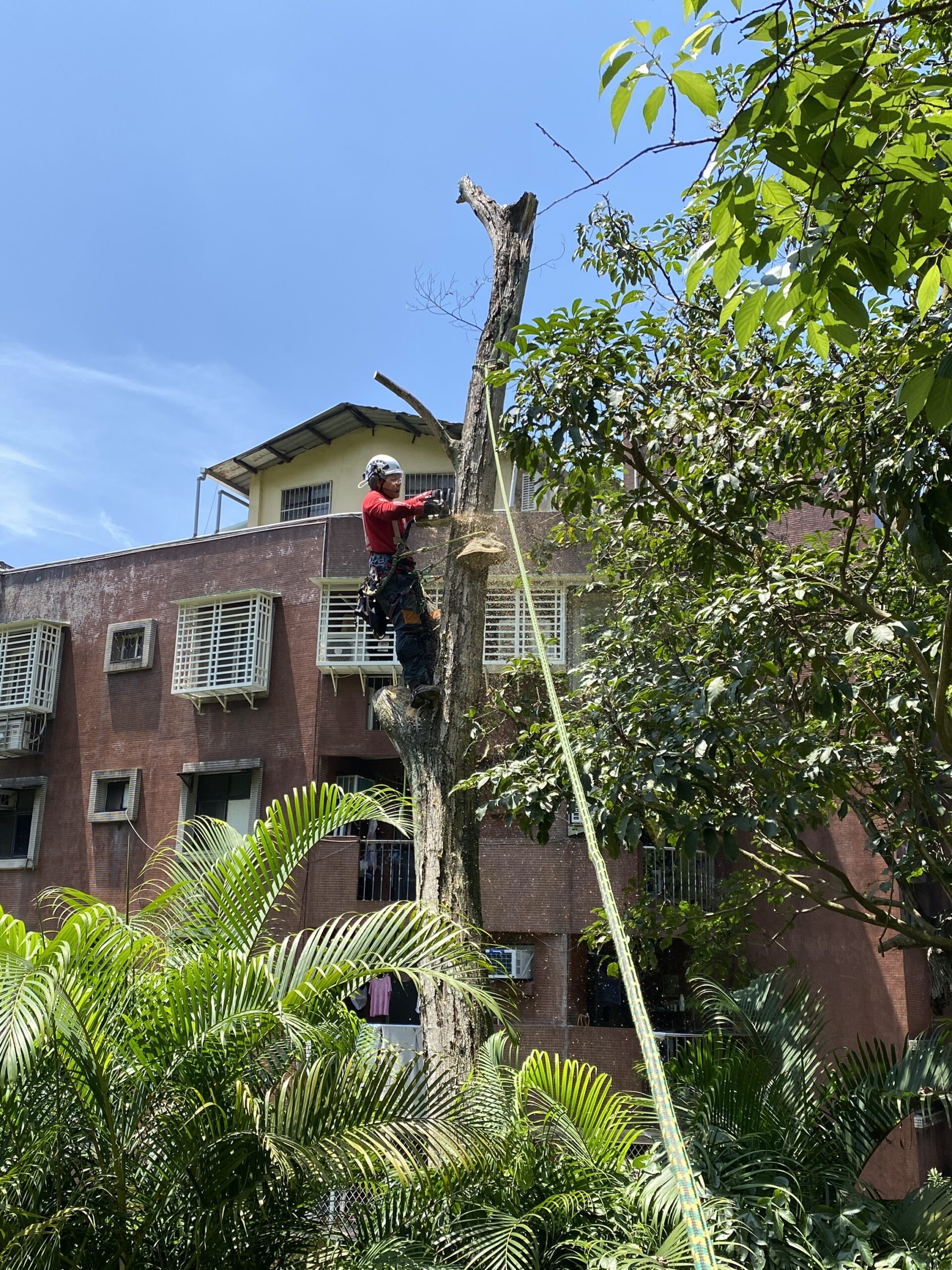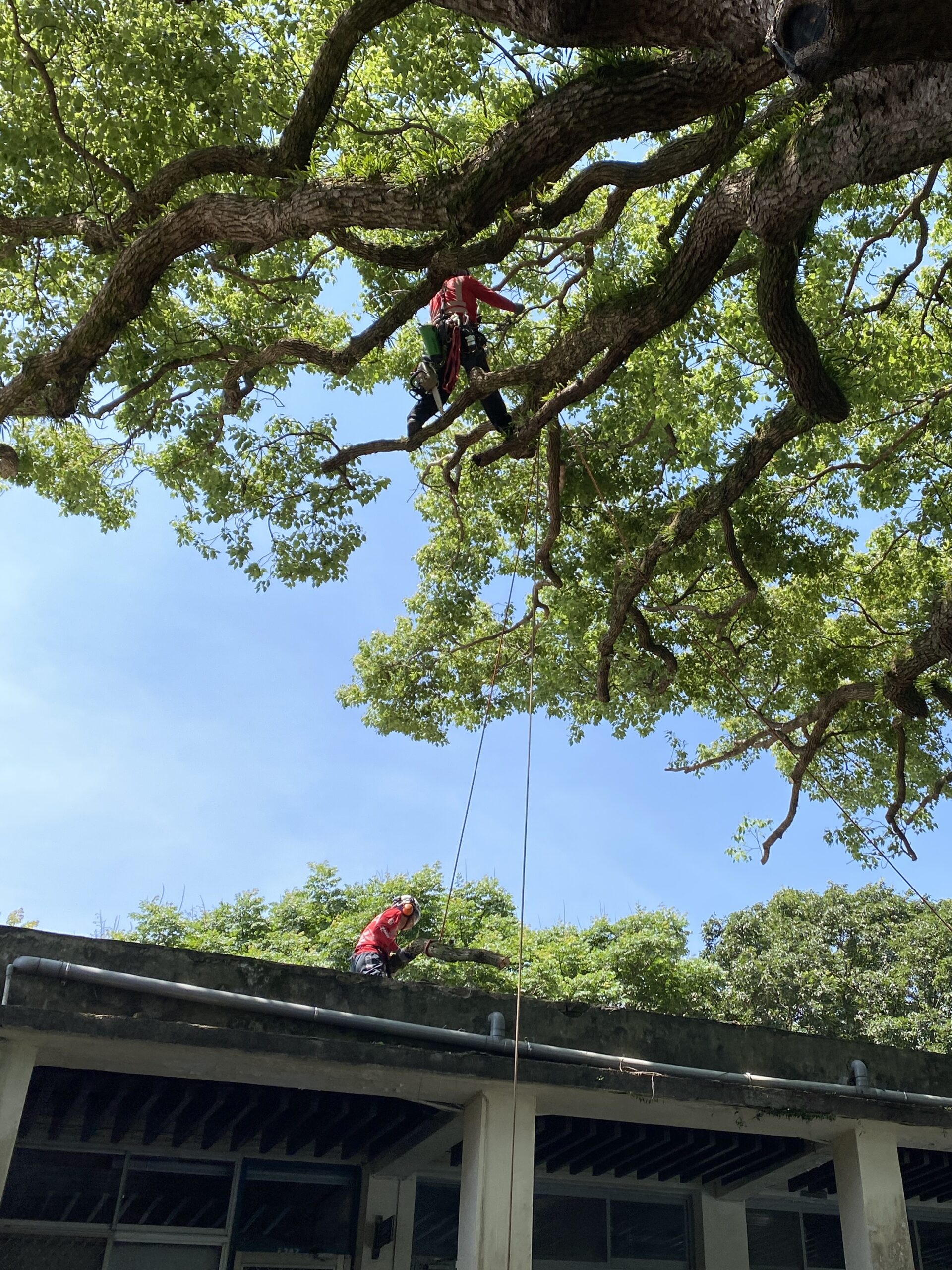 利用繩索與國際認證的專業配備,攀樹師靈巧穿梭於樹梢間,克服狹窄地形與建築框架,為您的愛樹修剪出最佳姿態